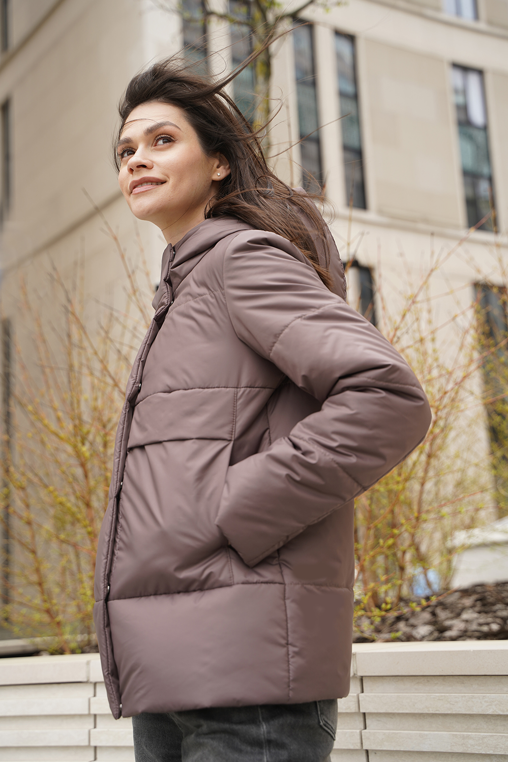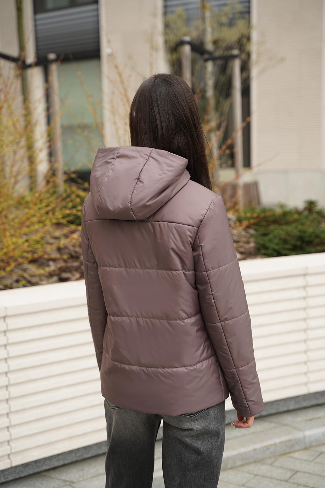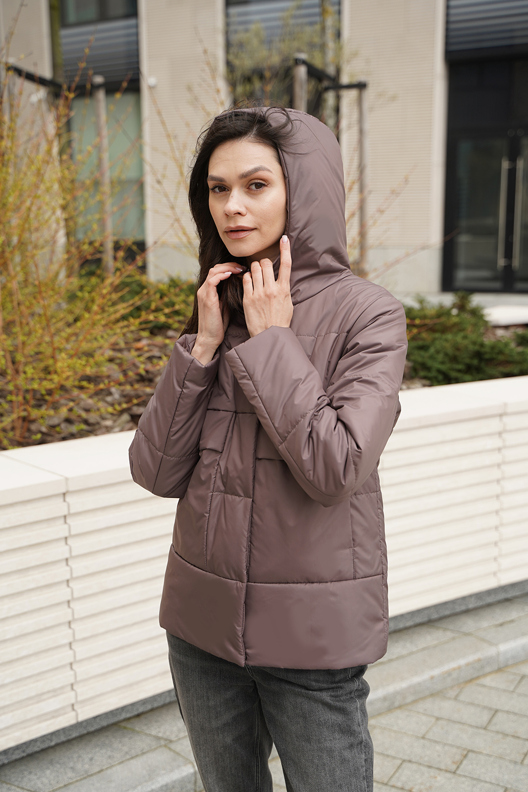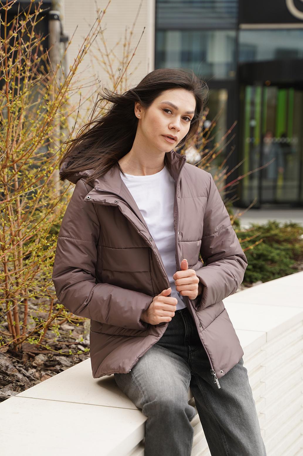 Практичная куртка с капюшоном изготовлена из водоотталкивающего материала, обеспечивающего защиту от ветра и влаги. Изделие имеет прямой силуэт, что обеспечивает свободу движений и комфортную посадку на различных типах фигур. Застежка на витую молнию и потайные кнопки. Накладные карманы на уровне груди для удобного хранения мобильного телефона, кошелька или других мелочей. Изделие имеет высокое качество пошива, уделяется внимание каждой детали, что обеспечивает надежность и долговечность изделия. В целом, данная модель представляет собой современную и функциональную верхнюю одежду, которая обеспечивает защиту от погодных условий и комфорт в повседневной жизни.