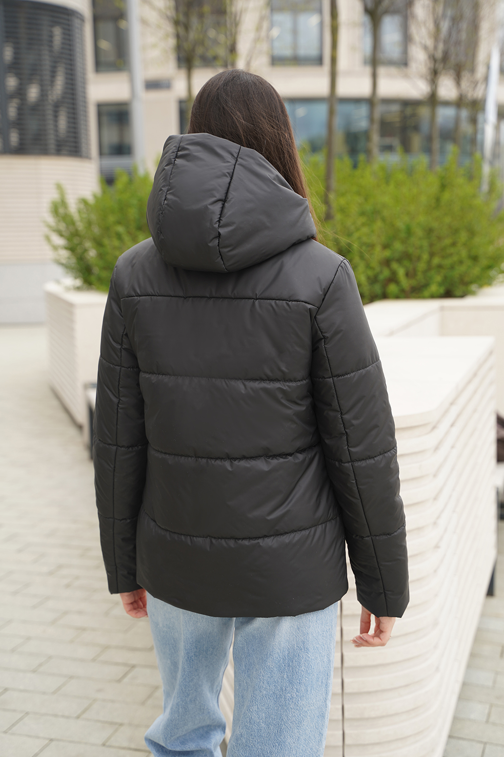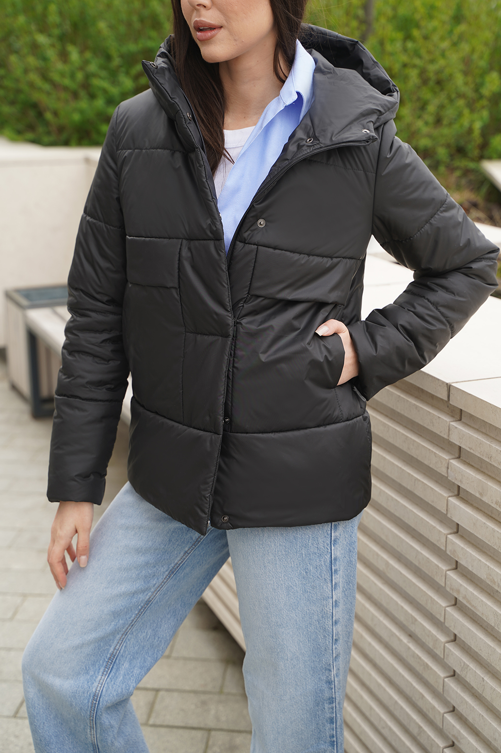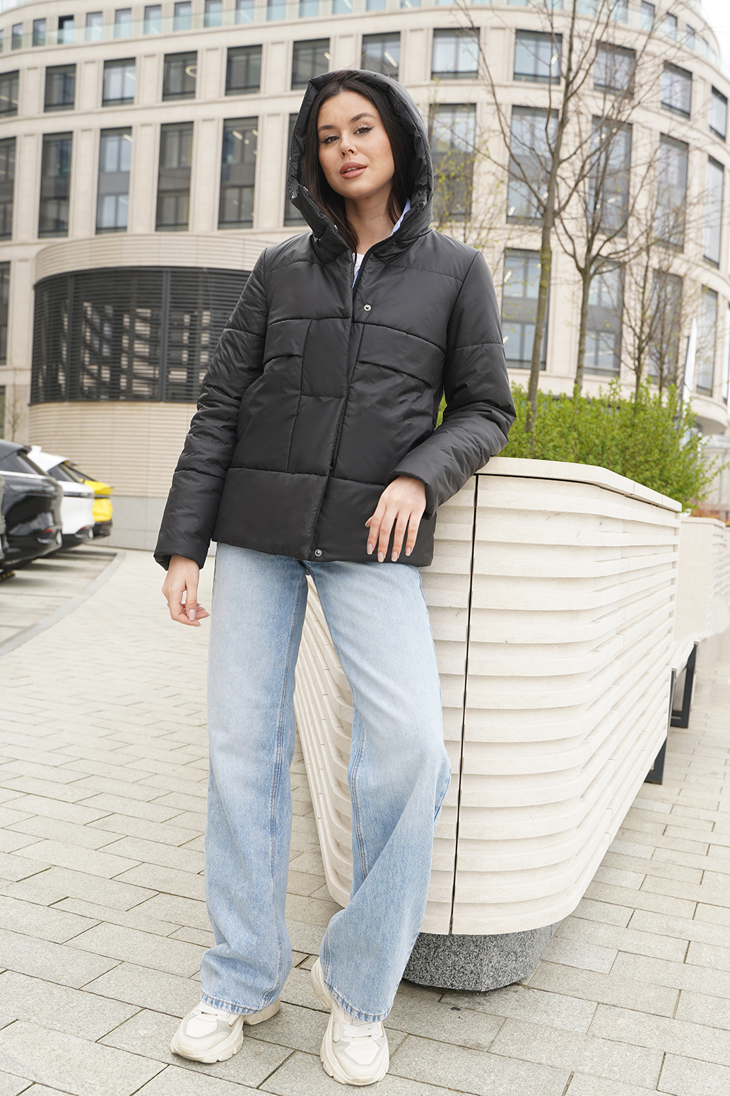Практичная куртка с капюшоном изготовлена из водоотталкивающего материала, обеспечивающего защиту от ветра и влаги. Изделие имеет прямой силуэт, что обеспечивает свободу движений и комфортную посадку на различных типах фигур. Застежка на витую молнию и потайные кнопки. Накладные карманы на уровне груди для удобного хранения мобильного телефона, кошелька или других мелочей. Изделие имеет высокое качество пошива, уделяется внимание каждой детали, что обеспечивает надежность и долговечность изделия. В целом, данная модель представляет собой современную и функциональную верхнюю одежду, которая обеспечивает защиту от погодных условий и комфорт в повседневной жизни.