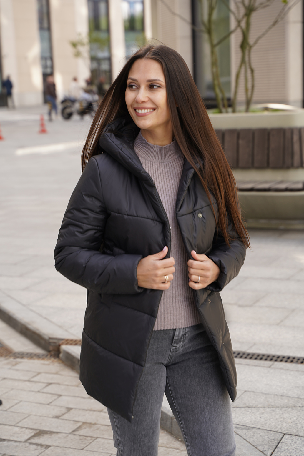 Лаконичная демисезонная куртка воплощает в себе элегантность и практичность. Ее силуэт, акцентированный застежкой на кнопки, придает образу непринужденную легкость, а шалевый капюшон, ниспадающий мягкими складками, окутывает теплом и уютом в прохладные осенние дни. Карманы, расположенные на линии груди, не только добавляют функциональности, но и служат стильным акцентом, подчеркивающим женственность фигуры. Эта куртка станет незаменимой вещью в гардеробе современной женщины, ценящей стиль и комфорт. Она легко сочетается с различными элементами одежды, позволяя создавать разнообразные образы – от повседневных до элегантных.