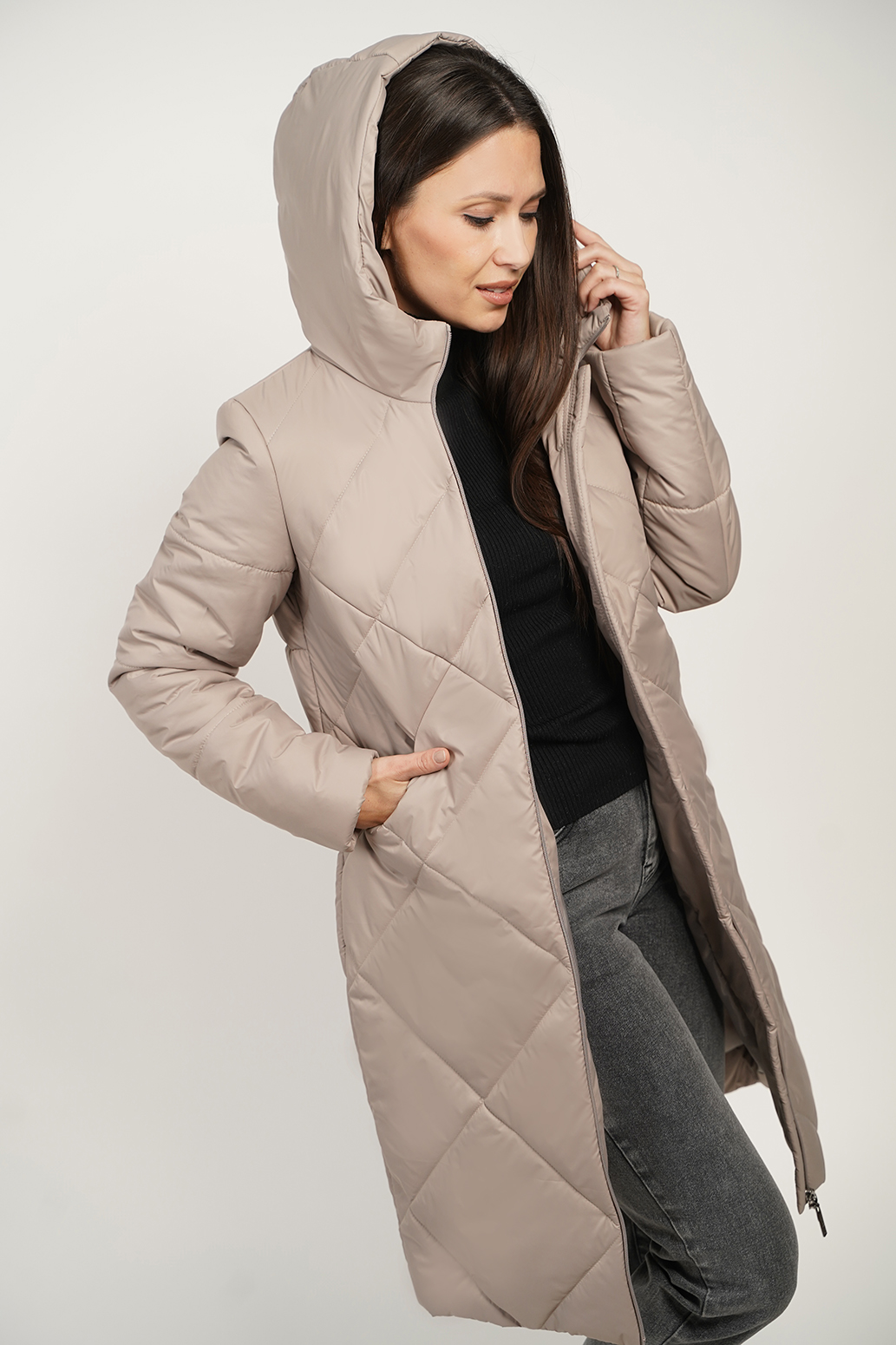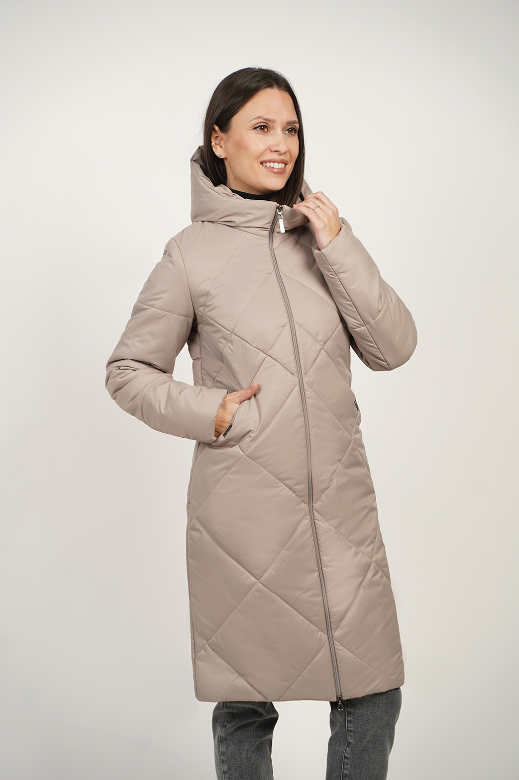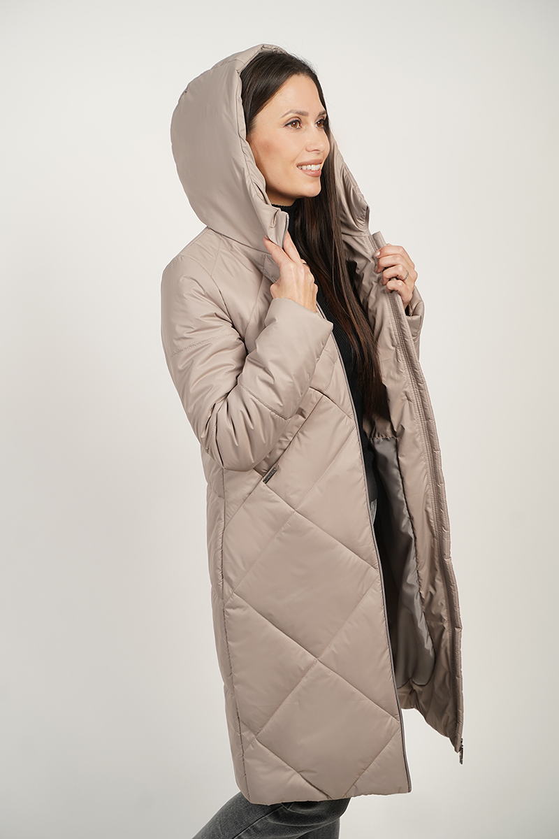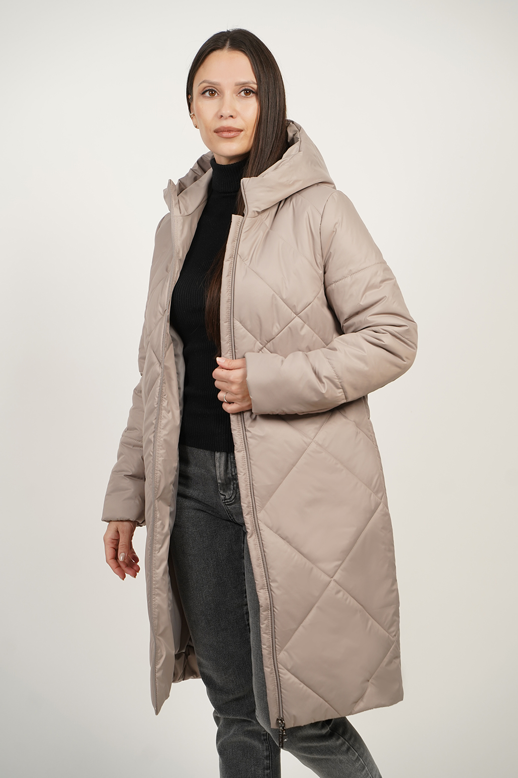 Стеганое пальто на синтепоне, выполненное с оригинальной стежкой, которая придает изделию особую текстуру и изысканный вид. Карманы спрятаны в швах, создавая гладкий и аккуратный силуэт. Видовая витая молния служит стильным акцентом и легко открывается и закрывается, добавляя изделию современный штрих. Капюшон с цельнокроенной стойкой отлично защищает от ветра и дождя. Такое пальто идеально сочетает в себе уют, функциональность и оригинальность.