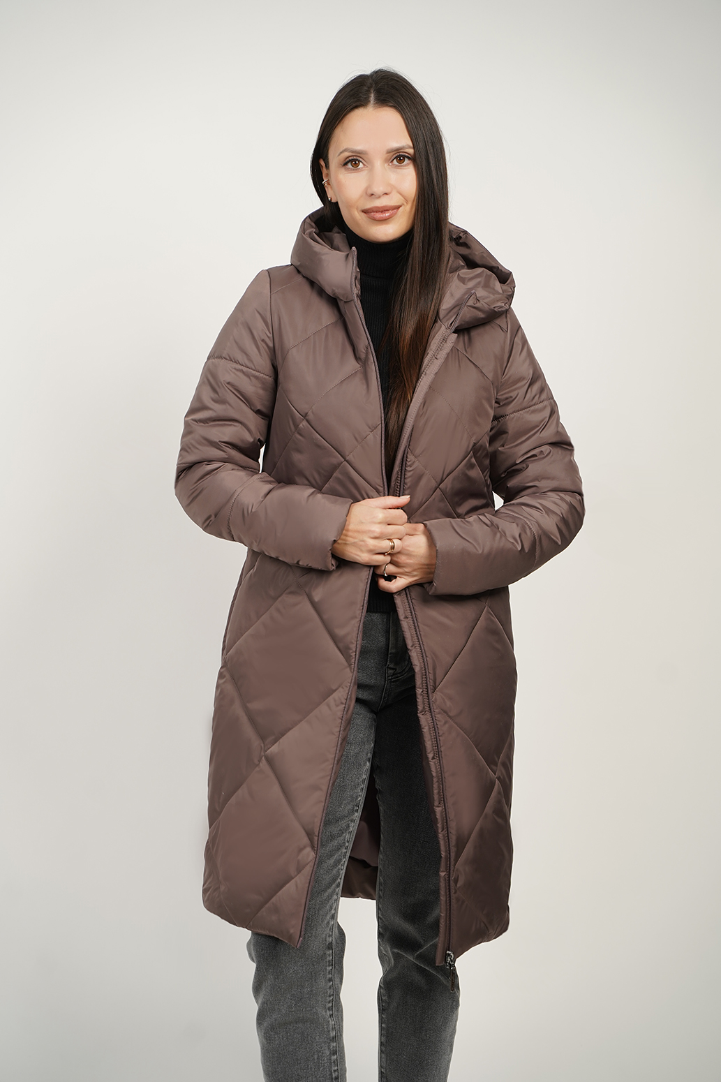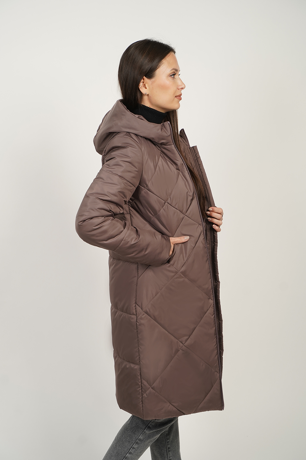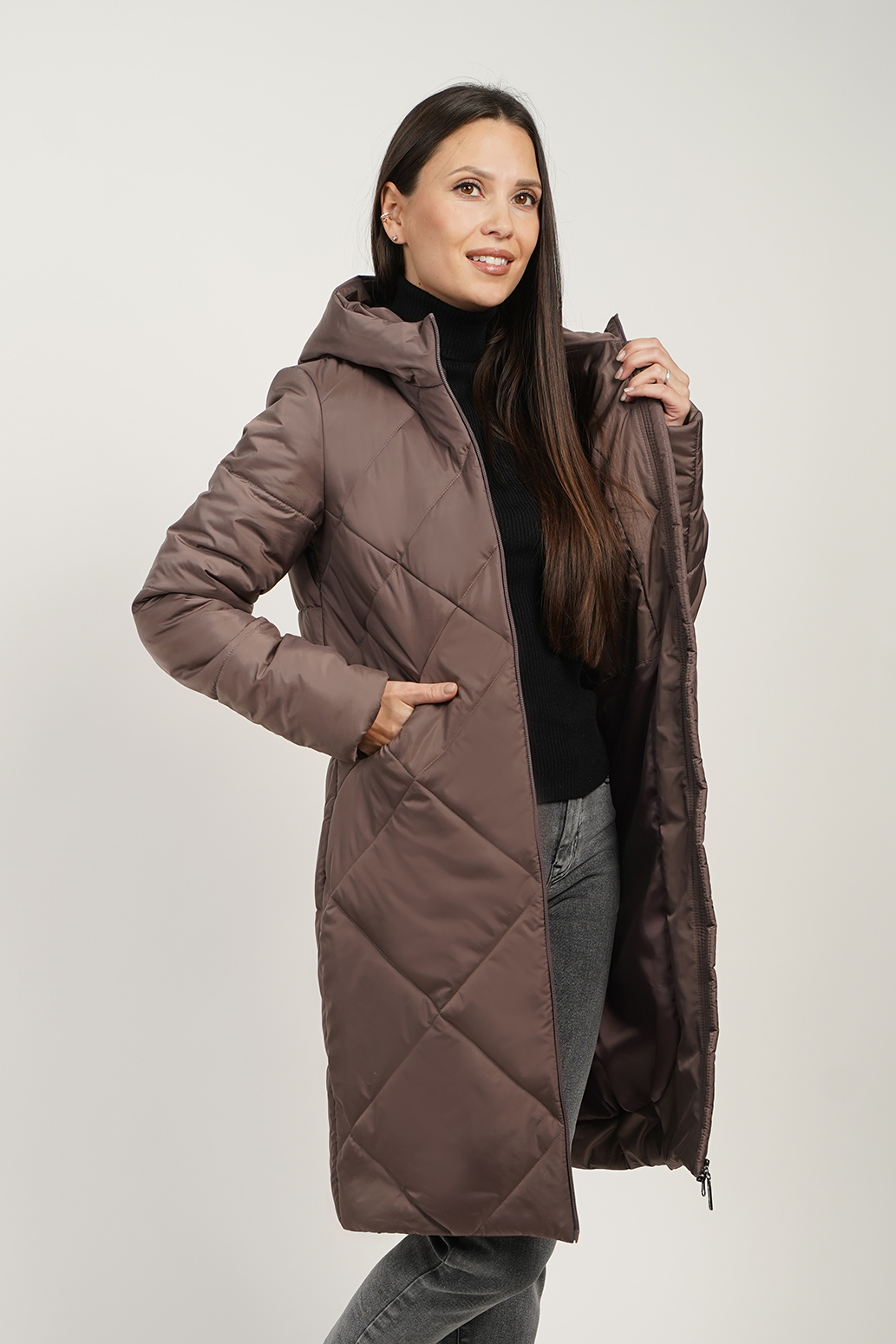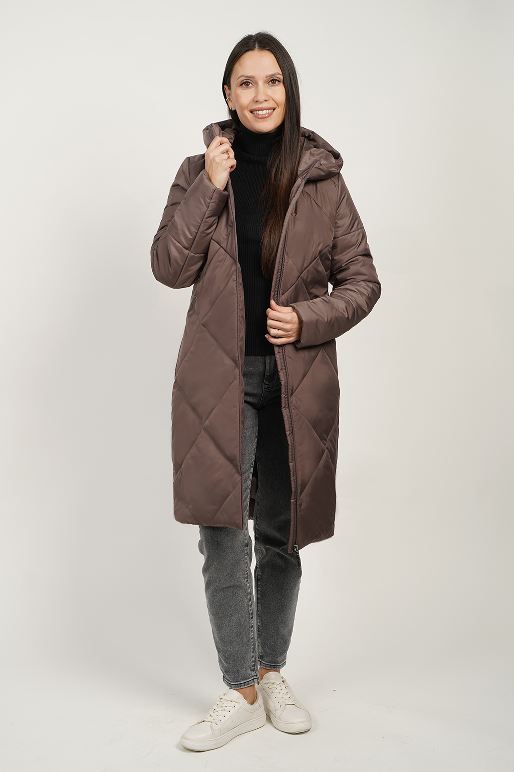 Стеганое пальто на синтепоне, выполненное с оригинальной стежкой, которая придает изделию особую текстуру и изысканный вид. Карманы спрятаны в швах, создавая гладкий и аккуратный силуэт. Видовая витая молния служит стильным акцентом и легко открывается и закрывается, добавляя изделию современный штрих. Капюшон с цельнокроенной стойкой отлично защищает от ветра и дождя. Такое пальто идеально сочетает в себе уют, функциональность и оригинальность.