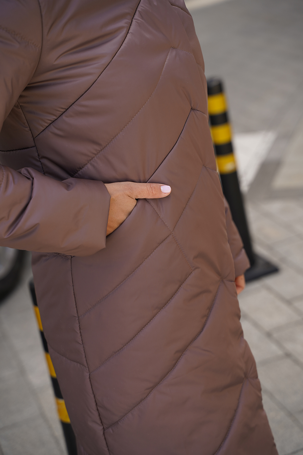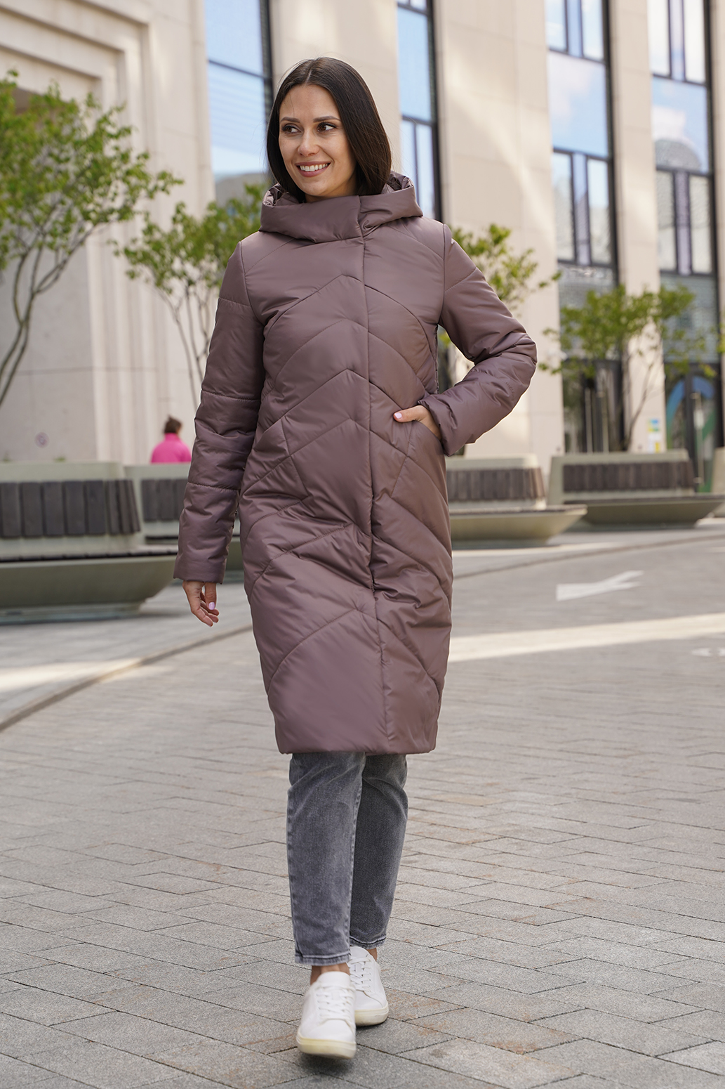 Женское удлиненное пальто на синтепоне полуприлегающего силуэта, отличный выбор для холодного времени года. Пальто с капюшоном со стойкой обеспечивает дополнительную защиту от ветра и холода, а оригинальная стежка придает изделию стильный и современный вид. Прорезные карманы не только удобны, но и добавляют функциональности. Такое пальто можно сочетать с различными нарядами: от джинсов и свитеров до более строгих комплектов с платьями или юбками. Оно отлично подойдет как для повседневной носки, так и для более формальных случаев.