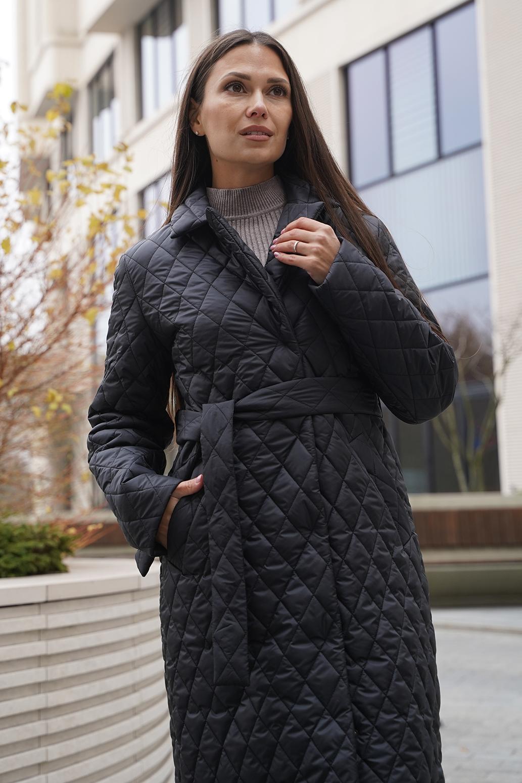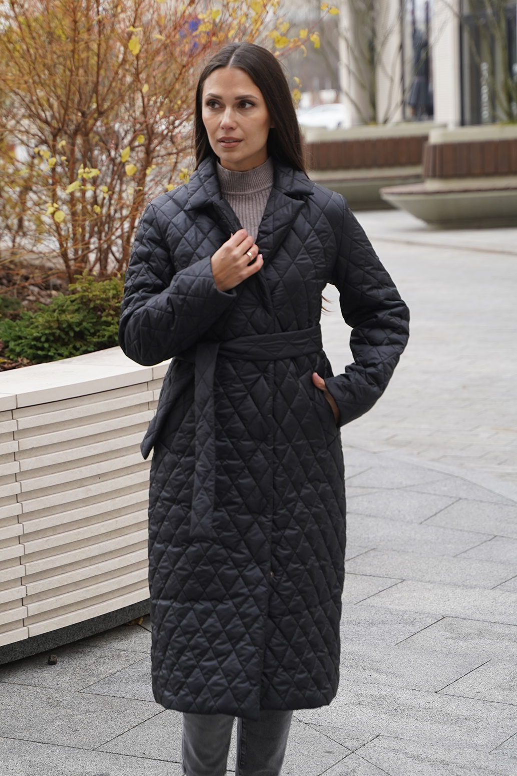 0 руб.Женское демисезонное пальто, идеально подходящее для осени и весны, выполнено из стеганого материала с утеплителем из синтепона, что обеспечивает тепло и комфорт в прохладную погоду. Модель отличается удлиненным кроем, который удобно закрывает колени, защищая от ветра. Шалевый воротник придаёт стильный акцент. Утепленное пальто застегивается на кнопки, что упрощает процесс одевания и создает аккуратный вид. Пояс позволяет подчеркнуть талию и адаптировать силуэт под индивидуальные предпочтения. Это стеганое пальто станет отличным выбором для женщин, которые ценят сочетание практичности и элегантности в своем гардеробе, обеспечивая тепло и защиту в межсезонье.