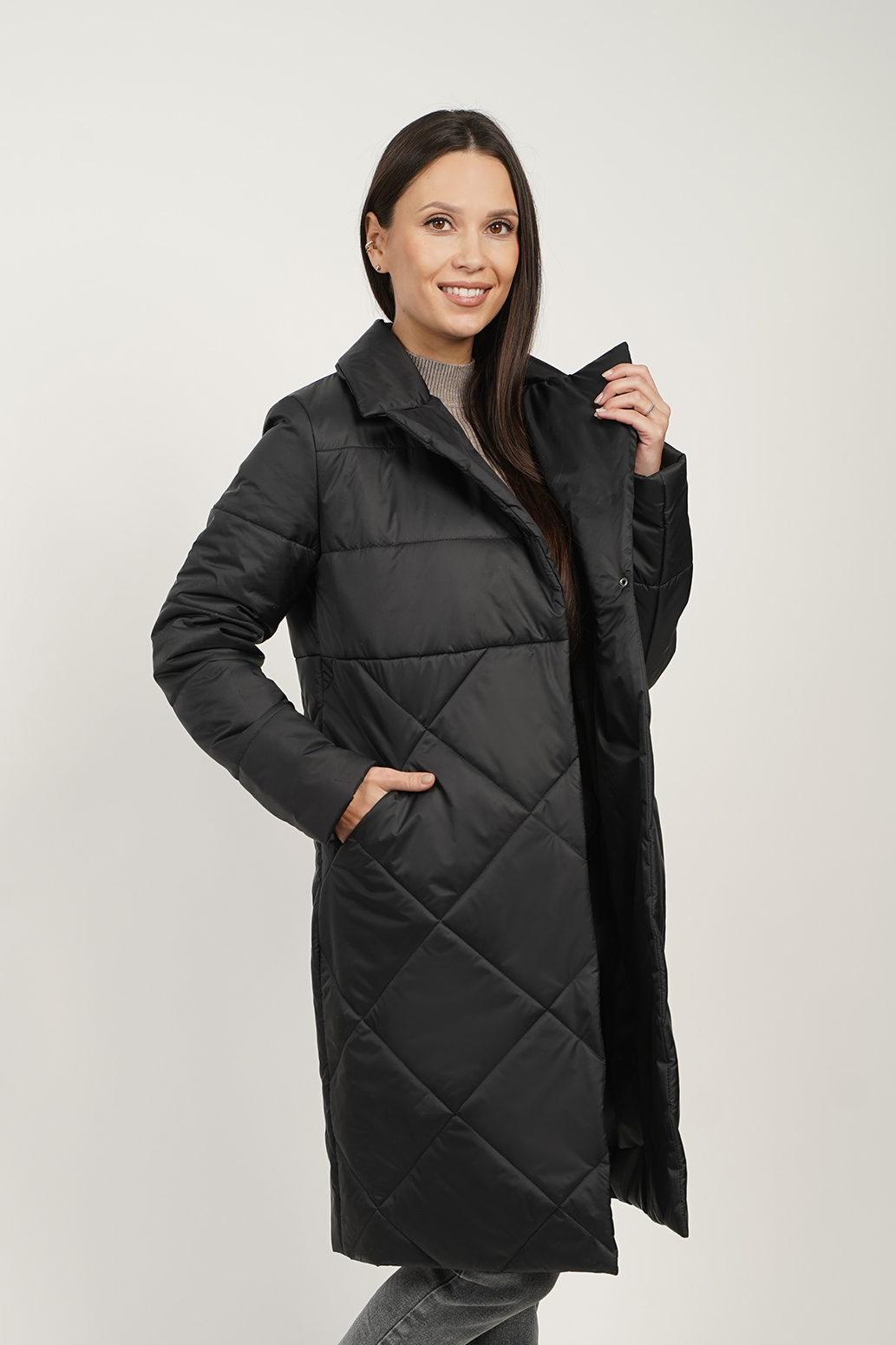 0 руб.Это женское демисезонное пальто идеально подходит для осенних и весенних прогулок. Удлиненное стеганое изделие выполнено из качественного синтепона, что обеспечивает отличную теплоизоляцию и комфорт в прохладную погоду. Длинная модель до колен защищает от ветра и холода, а стильная стежка ромбами придаёт элегантный вид. Шалевый воротник добавляет завершающий акцент, обеспечивая дополнительное утепление и уют. Пальто также оснащено карманами в шве, что делает его не только стильным, но и практичным. С таким изделием вы сможете легко создать гармоничный образ для любого случая, оставаясь при этом в комфортной теплой одежде.