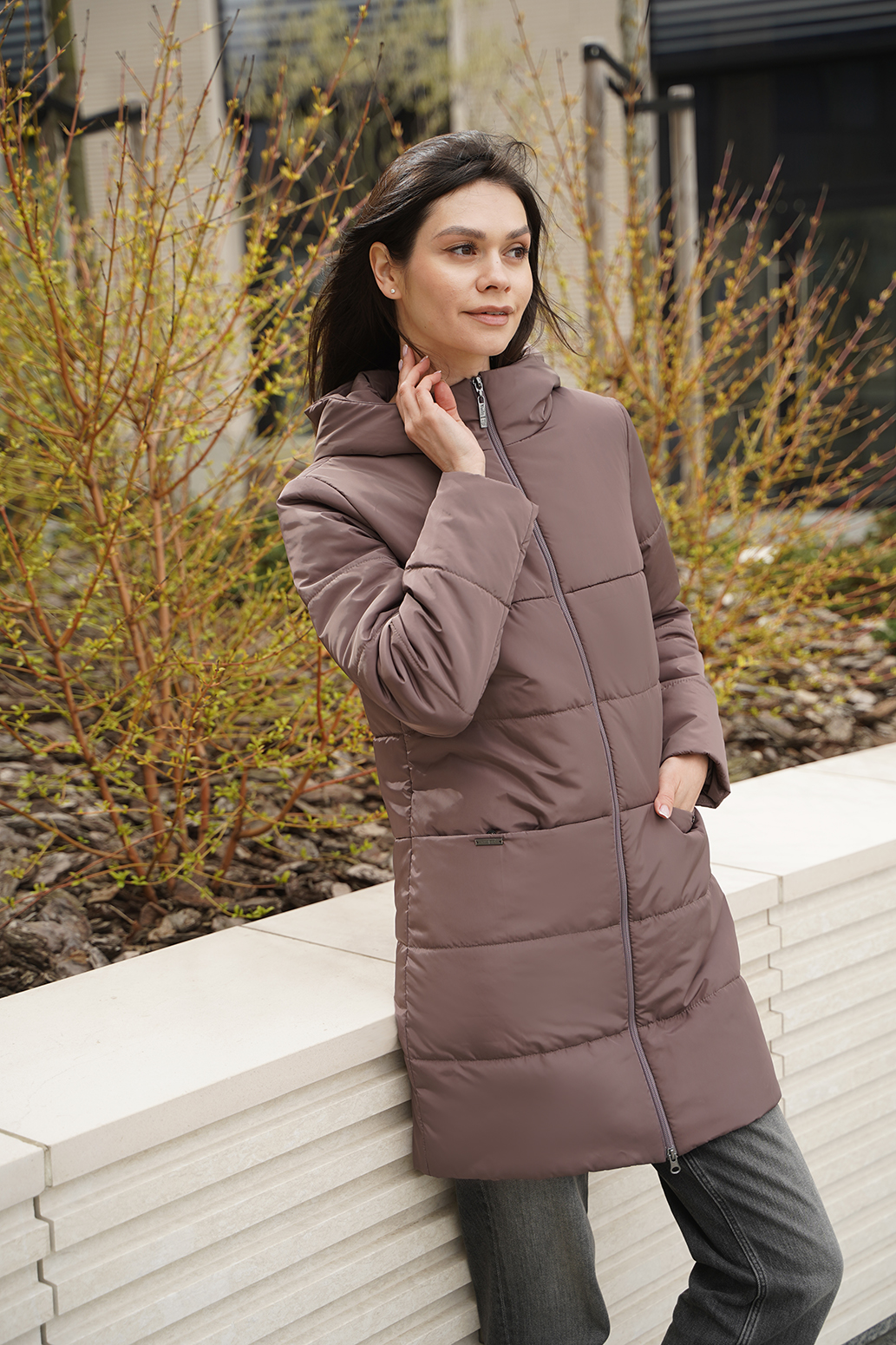 Универсальное полупальто прямого силуэта с капюшоном и центральной застежкой на молнию. Удобные карманы на кнопках в подрезах, втачной рукав. Модель выполнена с классической горизонтальной стёжкой. Хорошо сочетается с любыми предметами гардероба. Длина по спинке - ок. 85 см, длина рукава - ок. 64 см, рост 170 см.