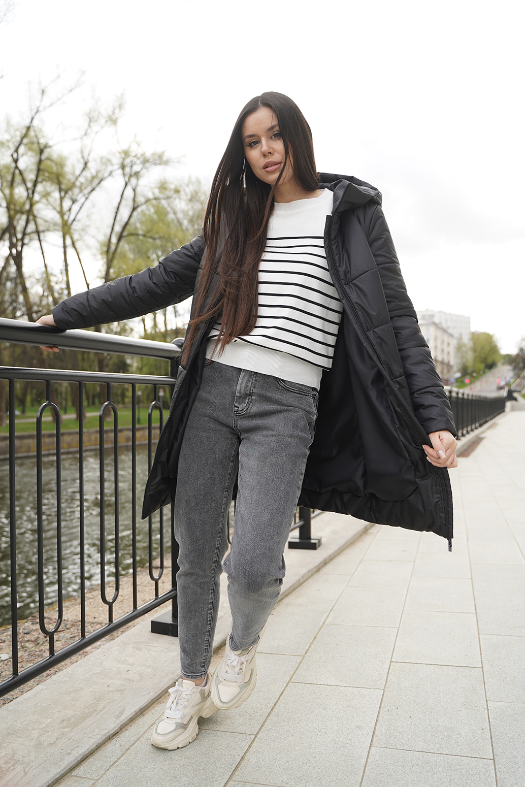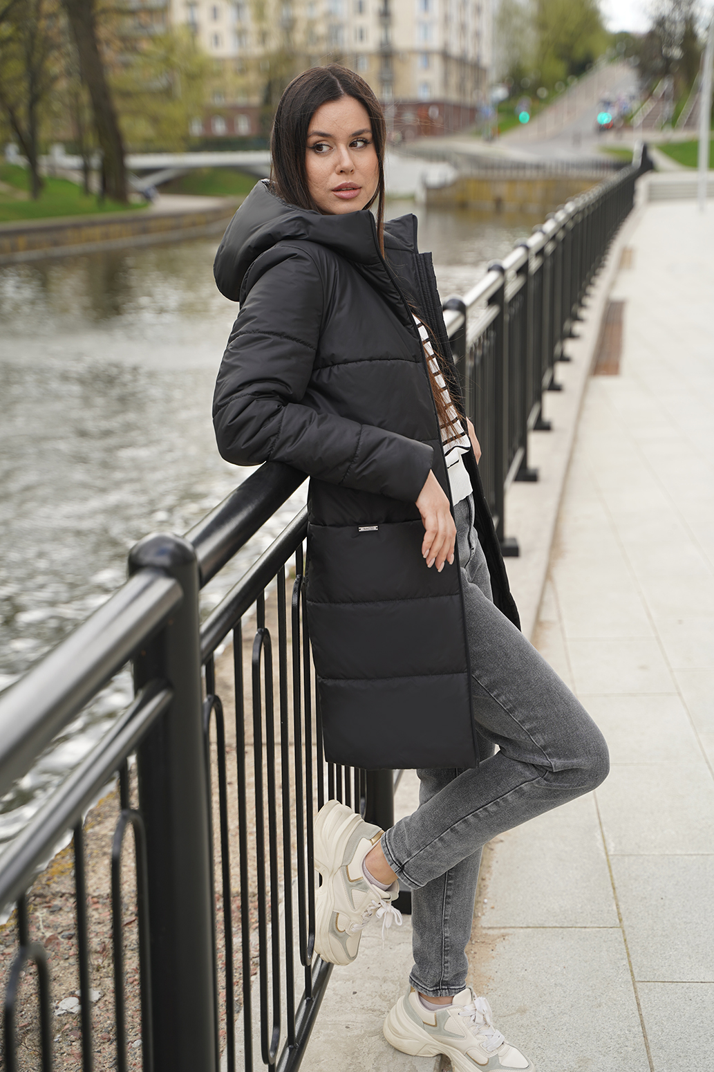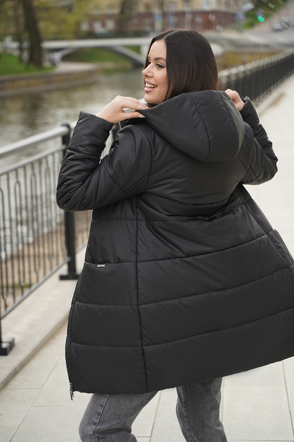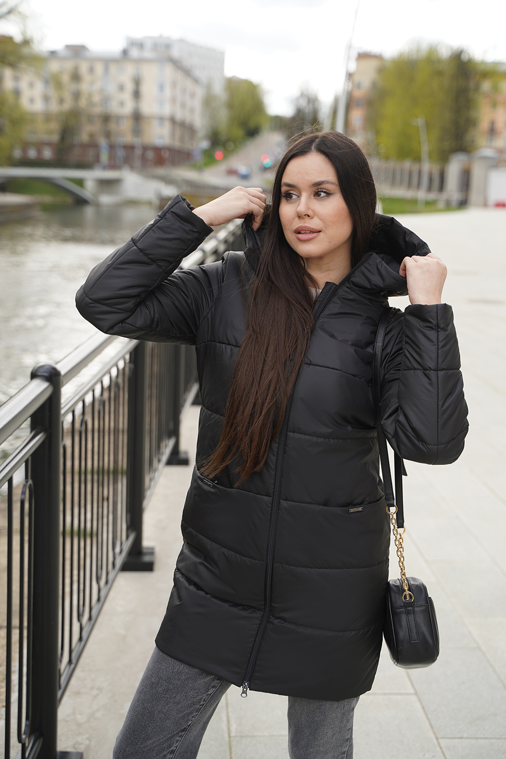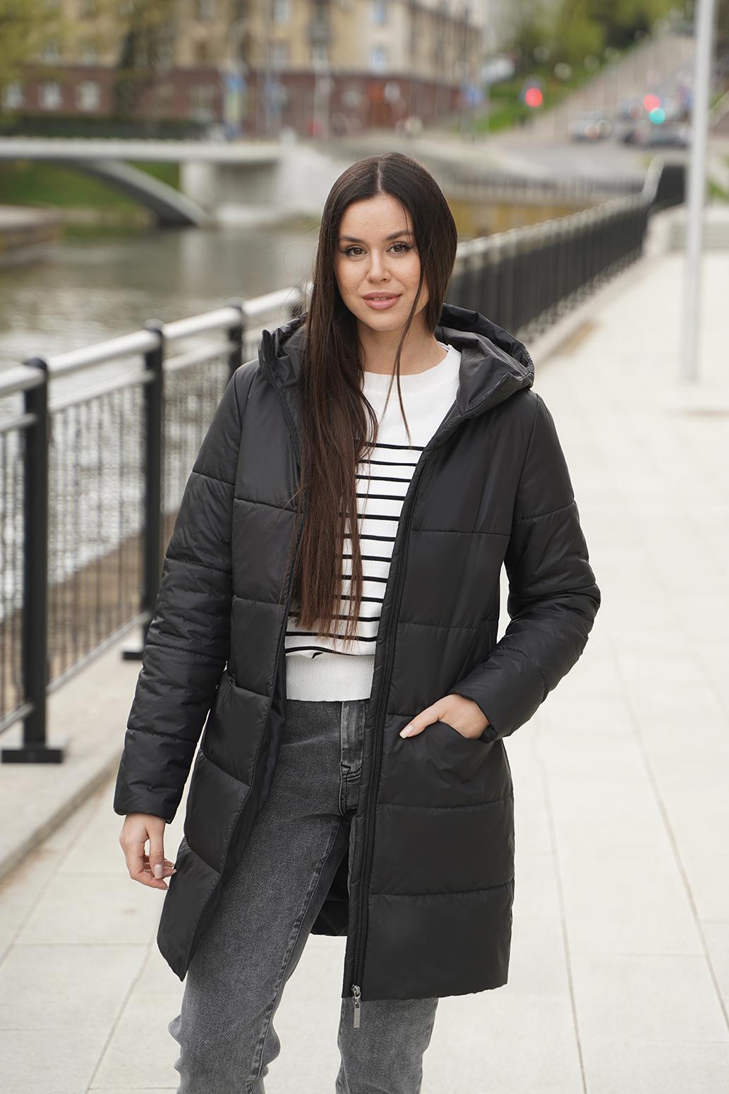 Универсальное полупальто прямого силуэта с капюшоном и центральной застежкой на молнию. Удобные карманы на кнопках в подрезах, втачной рукав. Модель выполнена с классической горизонтальной стёжкой. Хорошо сочетается с любыми предметами гардероба. Длина по спинке - ок. 85 см, длина рукава - ок. 64 см, рост 170 см.