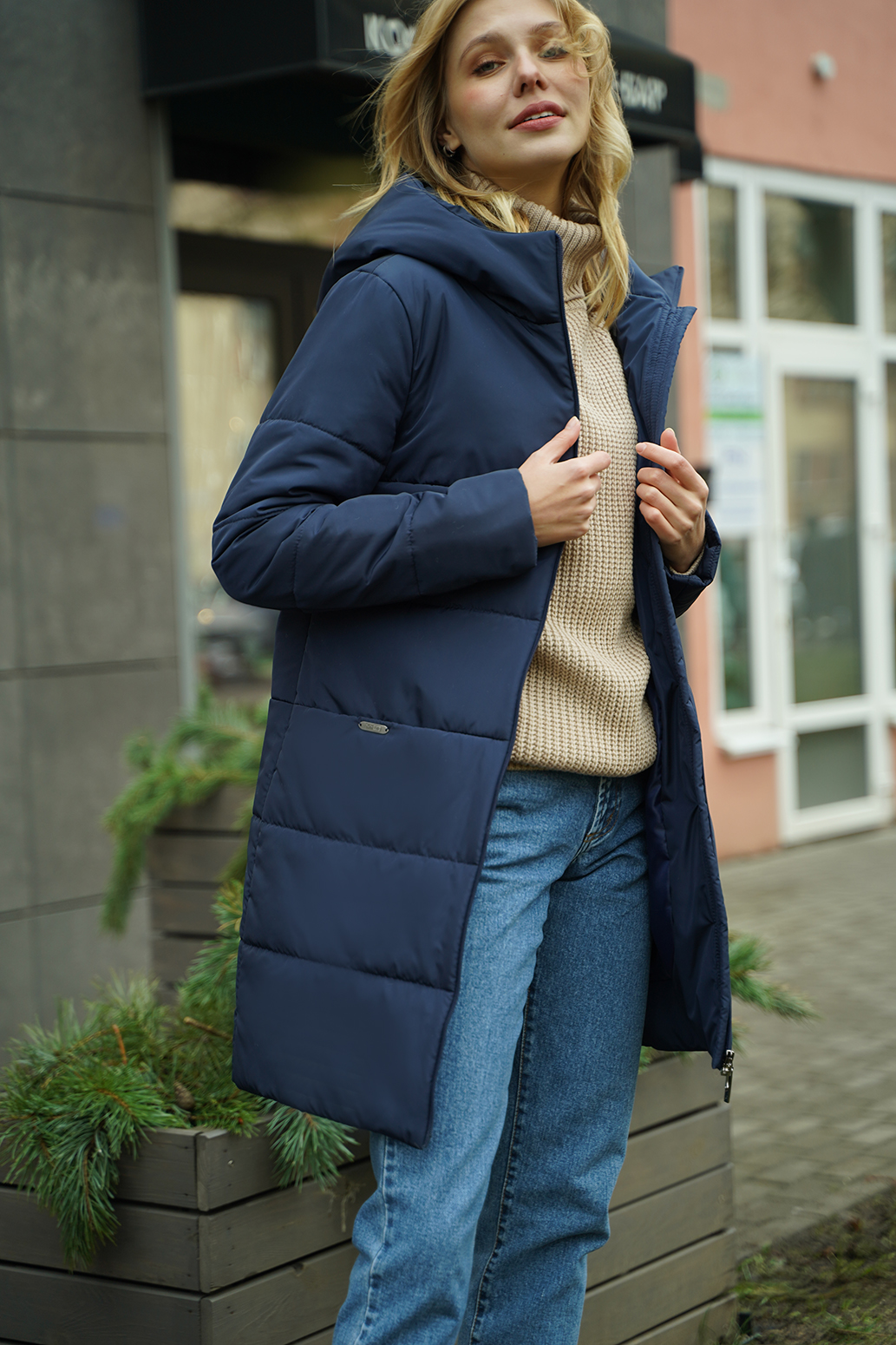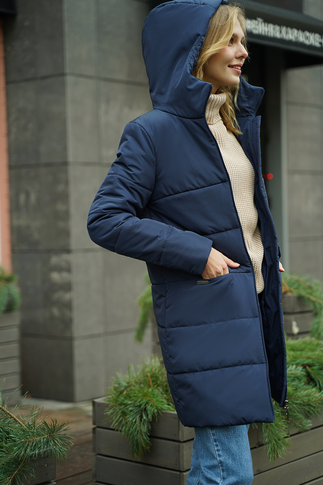 Универсальное полупальто прямого силуэта с капюшоном и центральной застежкой на молнию. Удобные карманы на кнопках в подрезах, втачной рукав. Модель выполнена с классической горизонтальной стёжкой. Хорошо сочетается с любыми предметами гардероба. Длина по спинке - ок. 85 см, длина рукава - ок. 64 см, рост 170 см.