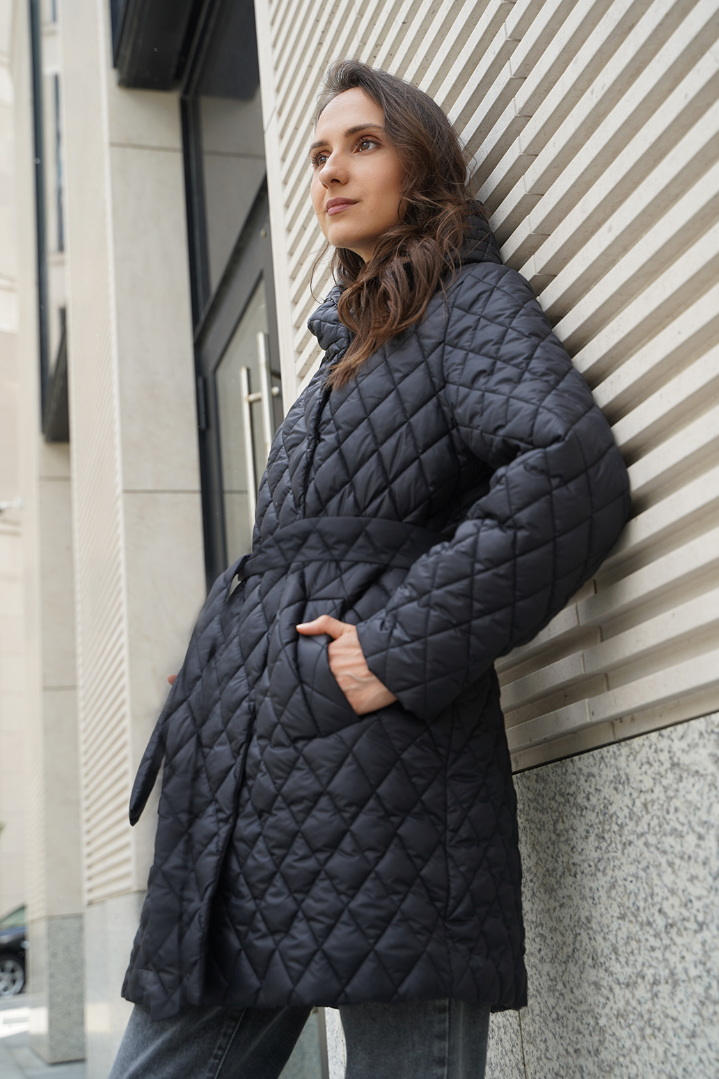 Шалевый капюшон делает эту модель особенно удобной в плохую погоду - он защищает голову и шею от ветра и дождя, обеспечивая комфорт и уют даже в самые холодные дни. Пояс прекрасно подчеркивает фигуру и создает эффектный силуэт, делая образ более женственным и элегантным. Прорезной карман добавляет внешнему виду дополнительную функциональность - в нем можно удобно хранить мелочи или согреть руки в прохладную погоду. Это высококачественная и стильная вещь, которая подойдет как для повседневной носки, так и для особых случаев, придавая образу изысканности и шарма.